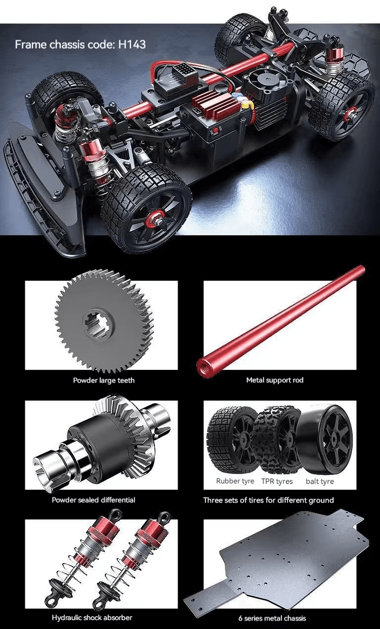 MJX Hyper Go 14301 er kraftmikill brushless RC bíll í 1:14 stærð sem gefur þér bæði off-road akstur og raunverulegt drift. Með fjórhjóladrifi, olíudempurum og drift-/grip dekkjum færðu hraða, stjórn og spennu í einum pakka. Bíllinn kemur með staðlaðri 2S rafhlöðu og nær allt að 42 km/klst, en styður einnig 3S rafhlöðu fyrir hámarkshraða allt að 55 km/klst. Frábær fyrir byrjendur og áhugamenn — Ready-to-Run strax úr kassanum!