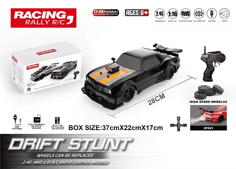 HOSHI SC16A04 er skemmtilegur og kraftmikill 4WD drift-bíll sem býður upp á spray-úða, LED ljós og lipra aksturseiginleika. Hann hentar jafn vel á malbiki, sandi og grasflötum og er fullkominn fyrir krakka, byrjendur . Tilbúinn beint úr kassanum!