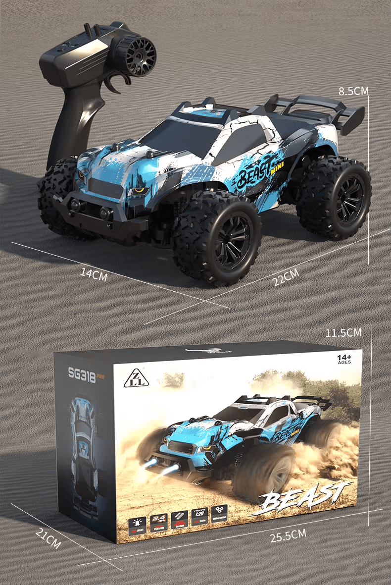 HOSHI SG318 PRO er nettur 1:20 4WD RC bíll sem sameinar einfaldleika og skemmtun — hann hentar vel fyrir byrjendur, börn eða þá sem vilja léttan og lipran bíl til aksturs á malbiki, möl, gras eða léttum torfærum. Með hraða um 20 km/klst, 30 mínútna akstur og er hann frábær fyrstapakki fyrir þá sem vilja byrja í RC eða einfaldlega hafa gaman.