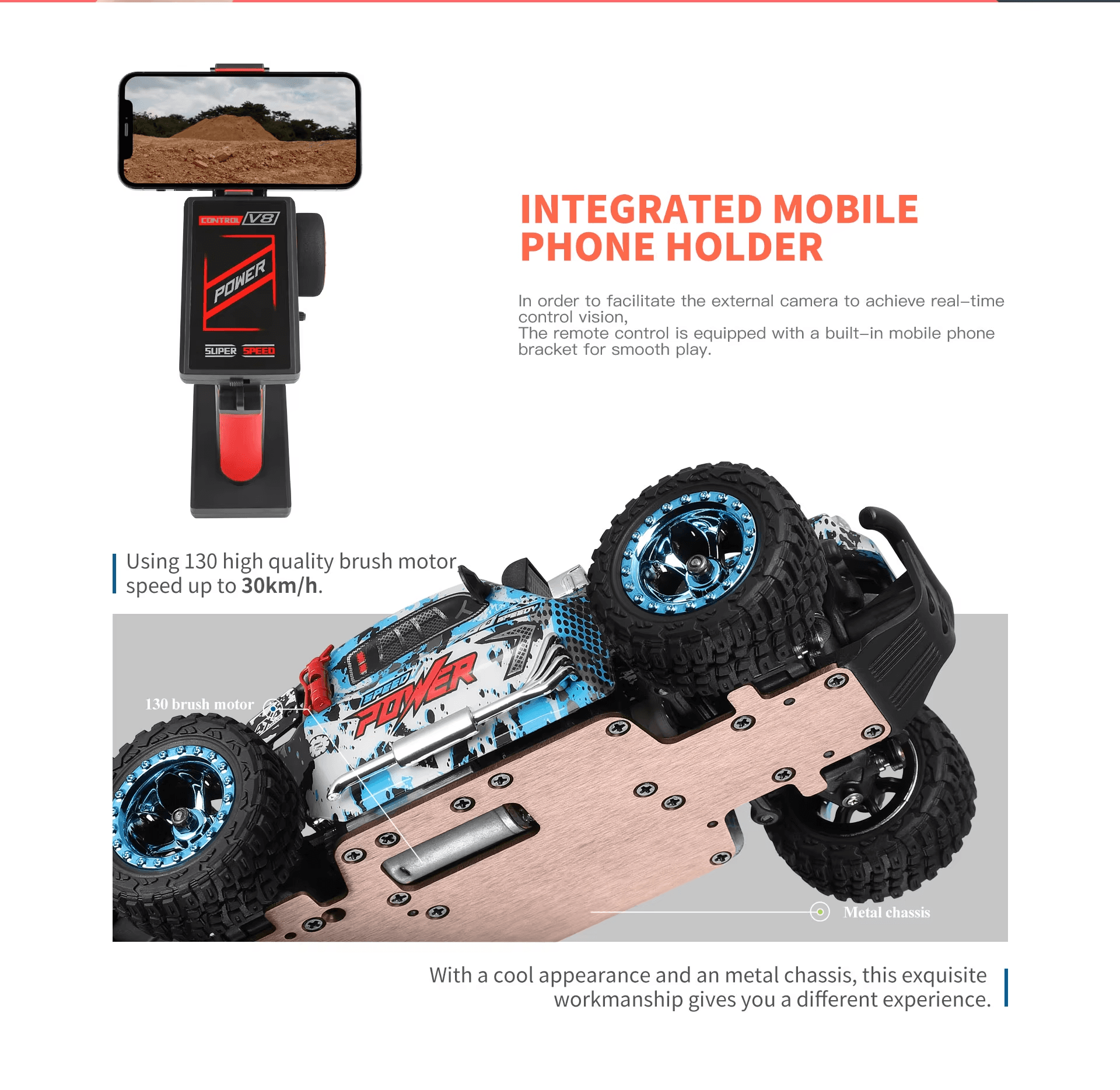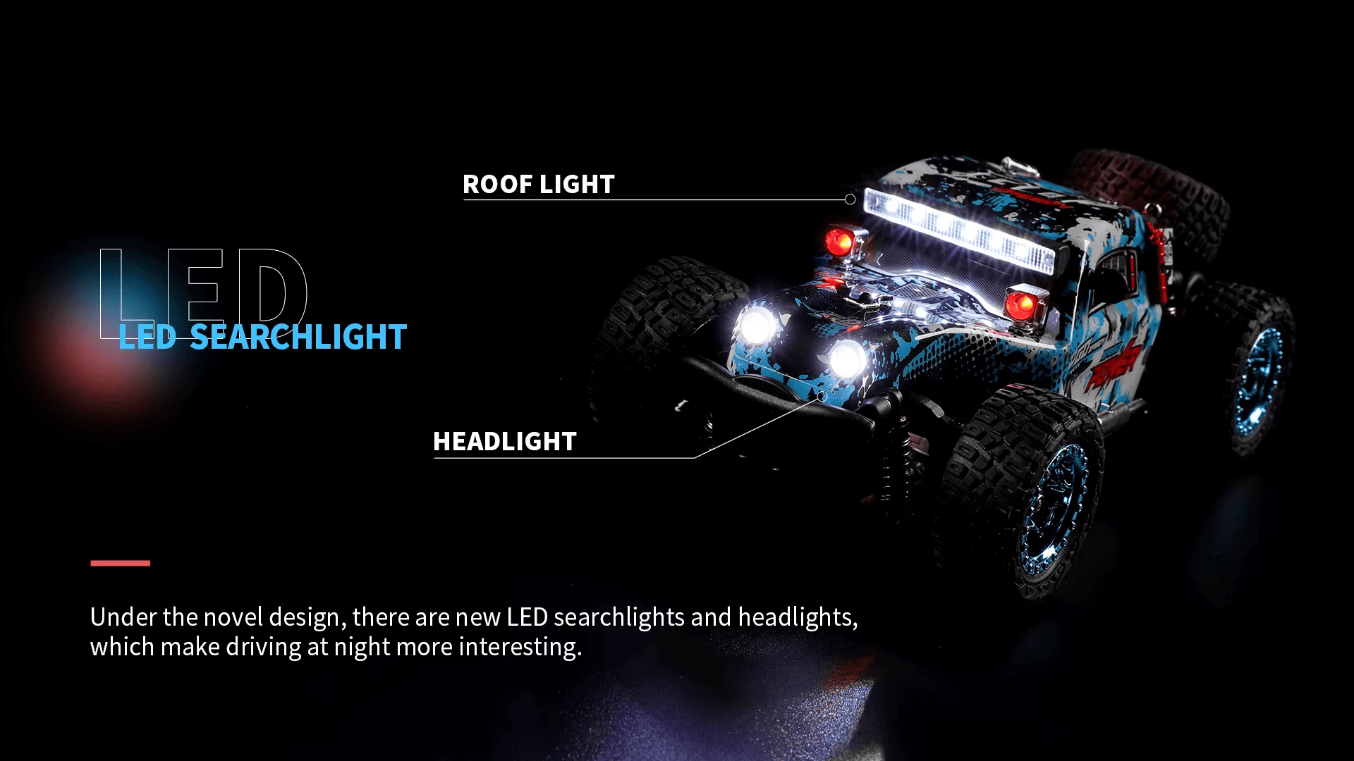 WLtoys 284161 er lipur og hraður mini 4WD RC bíll með undirvagn úr málmi, LED ljósum og allt að 30 km/klst hraða. Hann hentar fyrir malbik, gras og léttar torfærur og er frábært val fyrir byrjendur og þá sem vilja skemmtilegan og einfaldan RC bíl. Ready-to-Run beint úr kassanum!