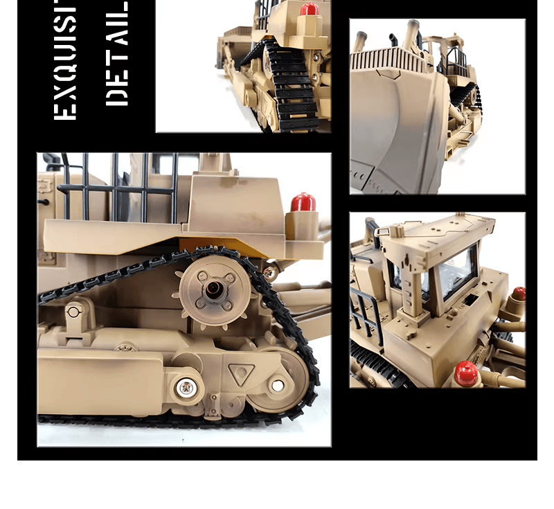 HUINA D9R er raunverulegur 1:18 fjarsstýrður Jarðýta með málmstyrktri byggingu, LED ljósum og 9 rásum sem leyfa hreyfingu skóflu og nákvæma stjórn. Frábær leik- og vinnuvél fyrir krakka og fullorðna sem vilja skemmtilegan RC vinnubúnað. Tilbúinn beint úr kassanum!